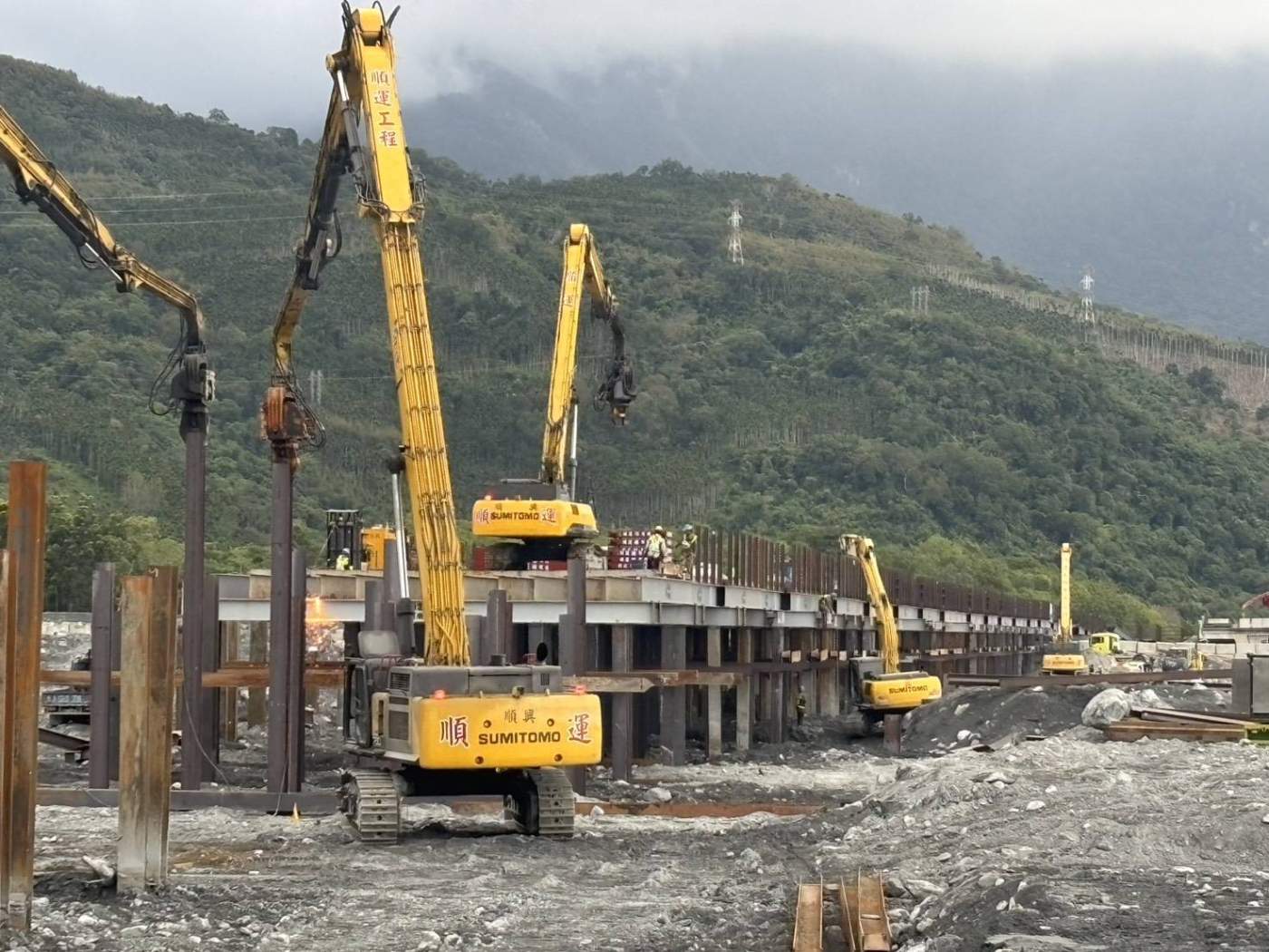 花蓮台9線231k+952馬太鞍溪鋼便橋工程,先前受鳳凰颱風與堰塞湖溢流影響,河床抬高、水位暴漲,臨時水路改道的土石堤數度遭沖毀,導致鋼立柱施工延宕達八天。所幸公路單位建立預警機制,能及時撤離人員與機具,避免災損。交通部公路局東區養護工程分局與花蓮工務段隨即協調施工廠商,積極增派人力與機具投入,使工程進度不僅追回延誤,更已超前。