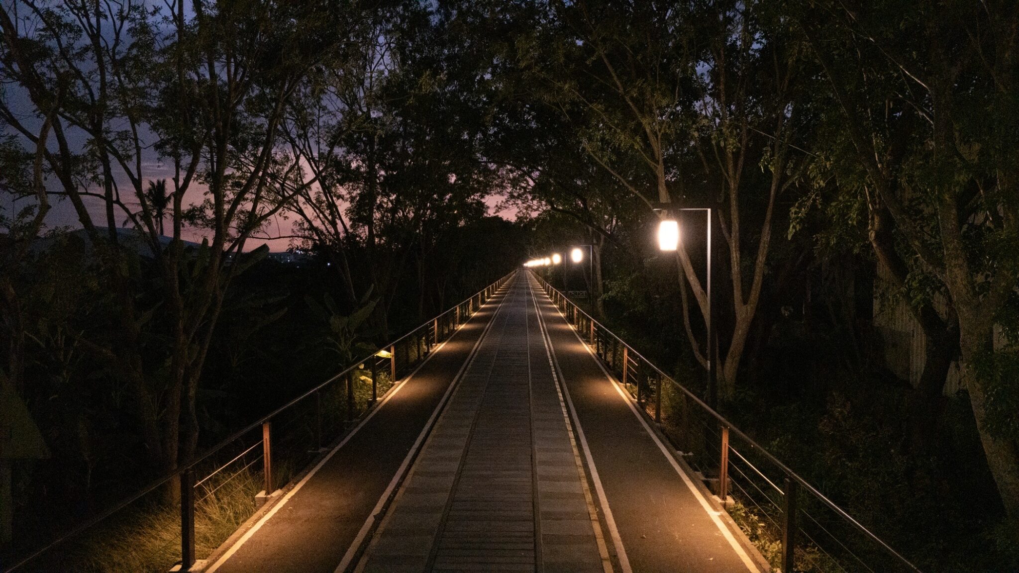 嘉油鐵馬道優化工程近年屢獲肯定,並榮獲2025建築園冶獎-公園綠地景觀類殊榮。本次提升工程延續前期照明理念,採用節能、不眩光、琥珀色溫的照明設計,與周邊綠蔭相互呼應。整體夜間照明以「友善行走、安全視覺、不干擾生態」為原則,營造溫潤柔和的光影層次。工程也落實永續精神,採用低耗能燈具及耐久鋪面,以減量設計降低未來維護與環境衝擊,展現兼具城市再生與環境永續的空間改造成果。