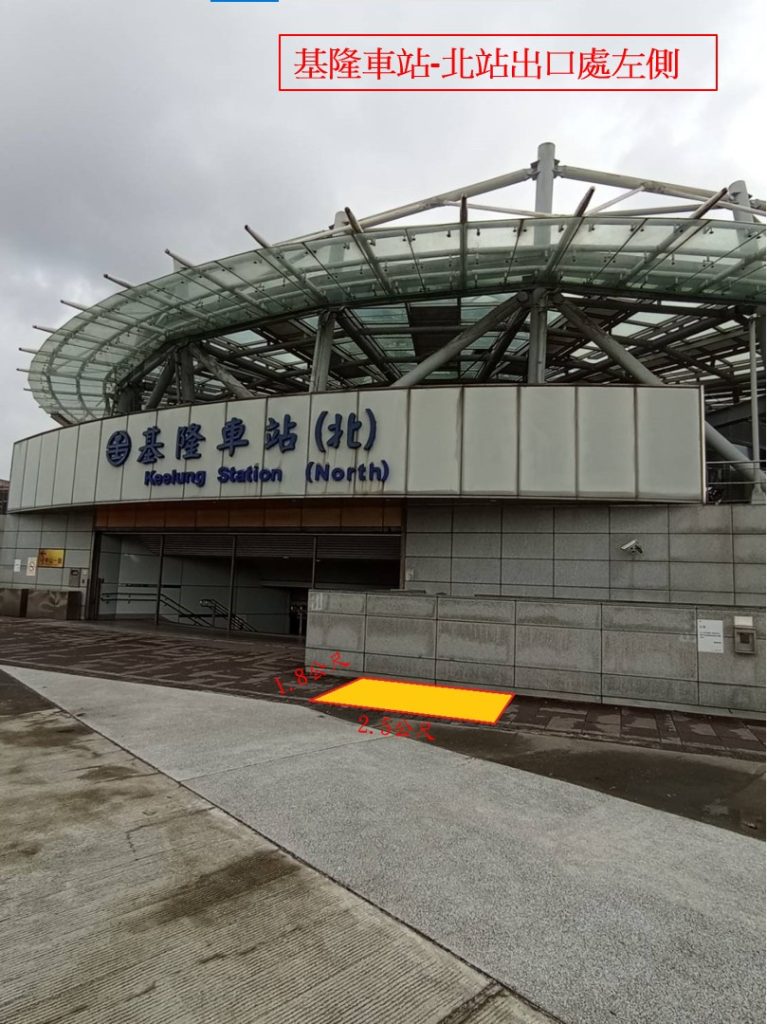 基隆火車站(二):基隆火車站南站一樓電梯右側前排第3根立柱,展演空間2×2.5公尺。