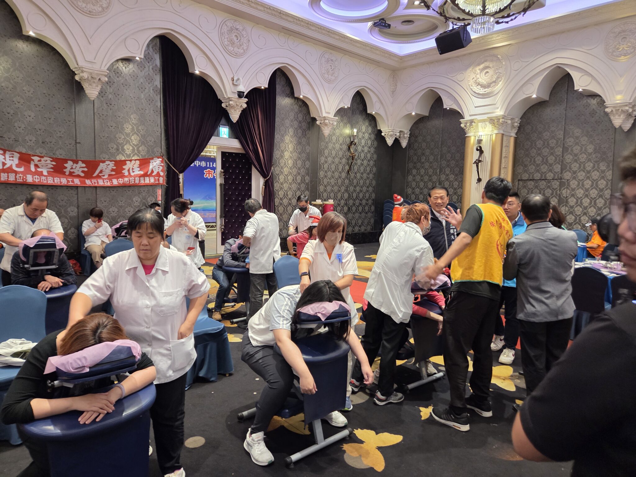 活動現場洋溢濃濃聖誕氣氛,氣氛溫馨熱絡。副秘書長張大春代表市長盧秀燕出席,向工會夥伴表達誠摯感謝,肯定工會長期以來與市府攜手合作、共同為勞工朋友打拚,並與現場貴賓一同為新的一年祈福,展現市府與勞工團體並肩同行、互信互助的夥伴關係。