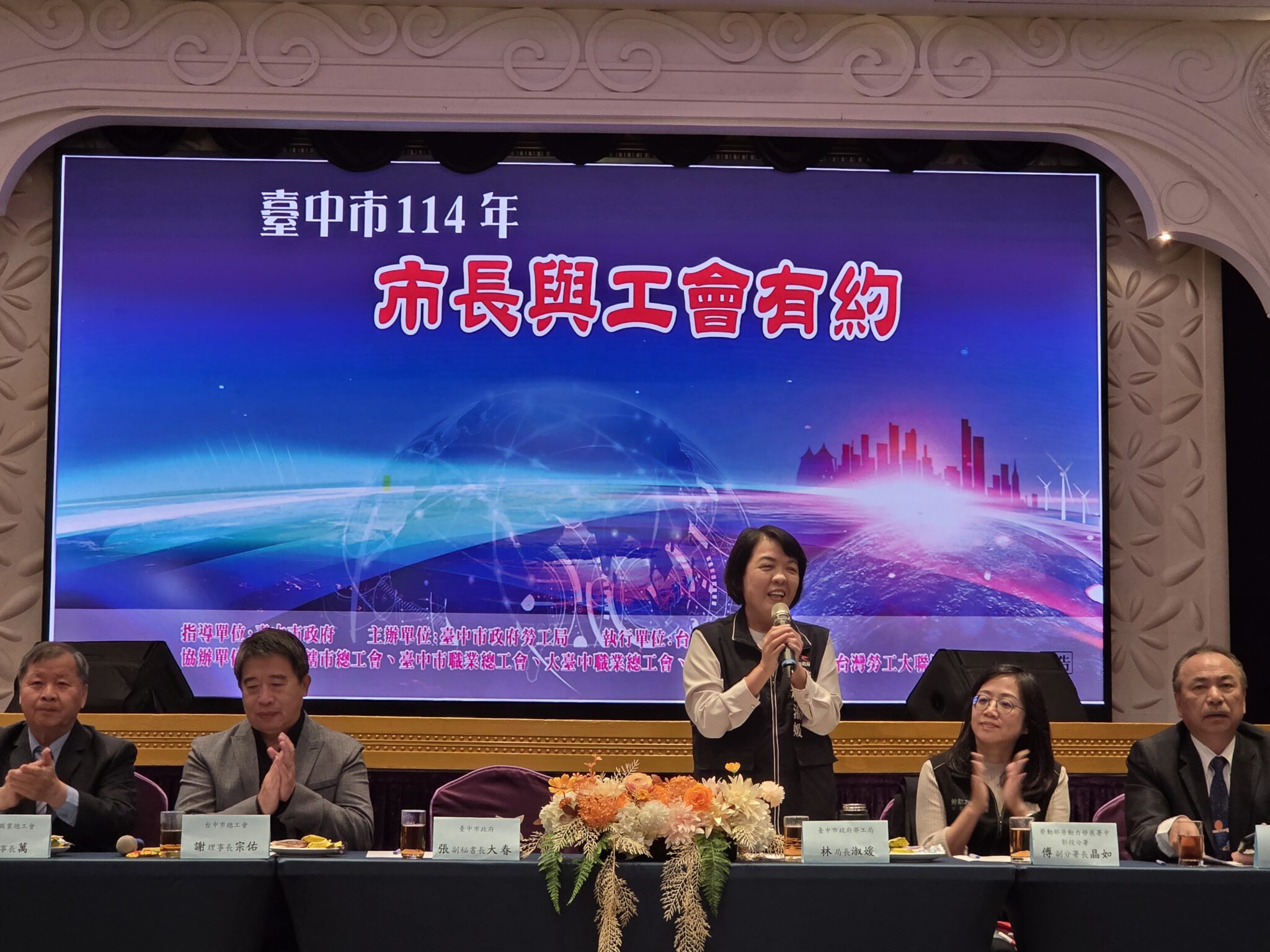 張副秘書長表示,盧市長自上任以來,始終以照顧勞工朋友為重要施政目標,感謝勞工局長林淑媛持續為勞工發聲、爭取預算,市府明年度將加碼編列經費,補助工會辦理勞工教育及勞工健康檢查;勞工是台中經濟發展最重要的推手,市府也將持續提供完善服務,努力提升勞工福祉,照顧更多勞工朋友。