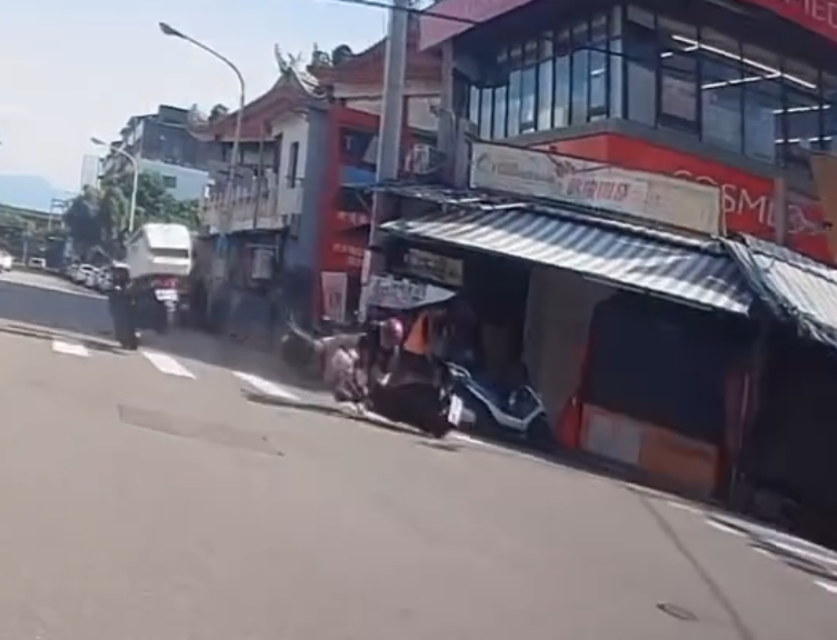 台中一中商圈兩輛機車相撞,造成兩名女騎士受傷。翻攝畫面