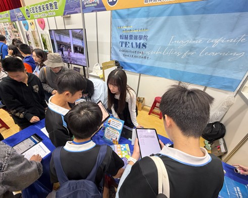 ▲學生於翰林攤位踴躍體驗 TEAMS 系統,透過平板互動,親身感受數位學習的樂趣。(圖/翰林雲端學院提供)