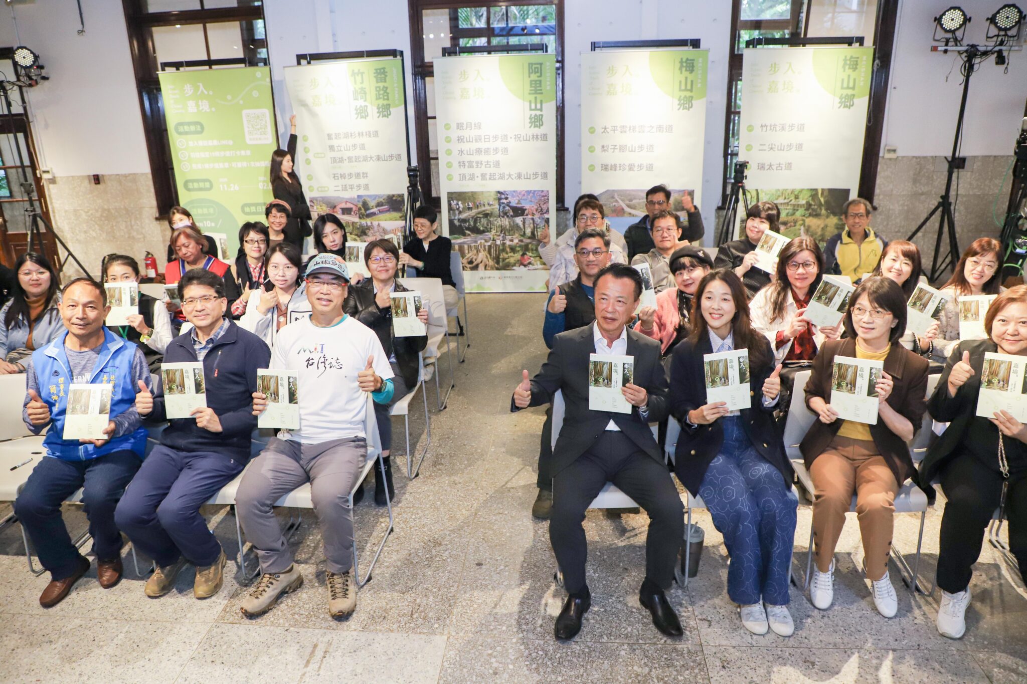 嘉義縣政府及天下雜誌攜手出版「步入嘉境-15條嘉義縣步道,與山一起呼吸」,全書以細膩文字及影像記錄縣內15條代表性步道。今26日在松山文創園區舉辦新書發表會,嘉義縣長翁章梁、「MIT台灣誌」電視節目製作人麥覺明及「微笑台灣」頻道總監李佩書邀請民眾走進嘉義,用雙腳認識這片土地。