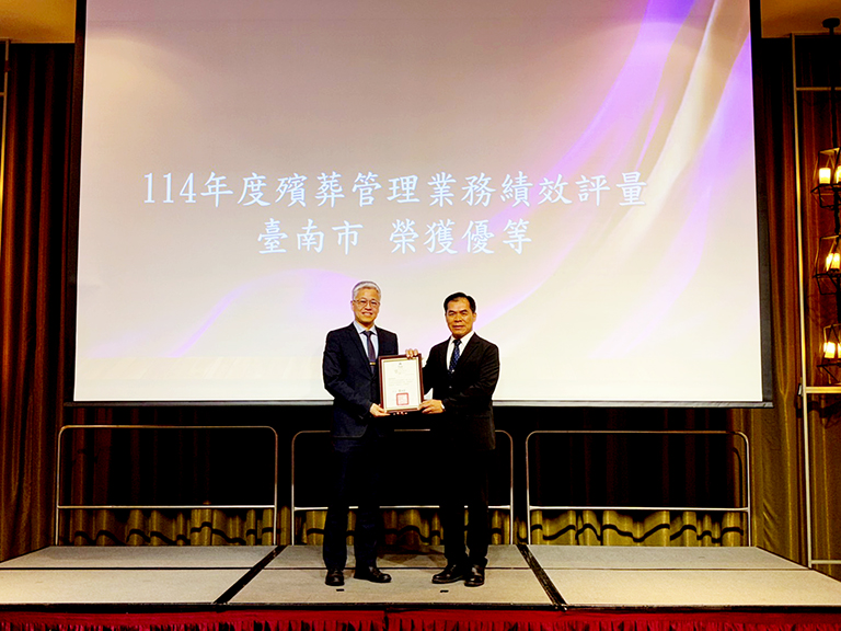 內政部辦理之「直轄市、縣(市)政府殯葬管理業務評量」於114年度舉行頒獎典禮,臺南市政府憑藉殯葬政策推動與整體服務品質表現,榮獲全國優等肯定。在市長黃偉哲任內,臺南市已連續6年3次獲中央評量優等殊榮,展現市府在殯葬管理制度與公共服務上的持續精進。近年並透過設施設備優化、服務流程精進與管理制度完善,逐步回應市民治喪需求;包括南區第一火化場順利落成啟用,以及新營福園擴建工程持續推動,全面提升殯葬服務量能與環境品質。