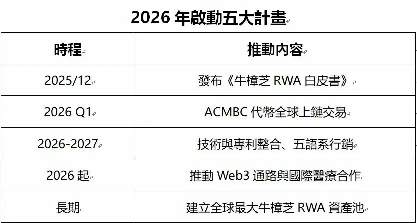 ACMB 長期深耕牛樟芝科學研究,從菌種、培育、萃取到臨床應用已投入超過 25 年,並累積 13 項專利,涵蓋癌症輔助治療、免疫調節、肝臟保護等領域。公司規劃,自 2026 年起將陸續把多年科研成果納入上市公司資產結構,以 RWA 方式拆分並上鏈流通,提高生技科研成果的金融評價效率。外界指出,此模式若成功,可望改善生技產業研發期長、資金回收慢的痛點,並降低跨境募資與交易門檻。