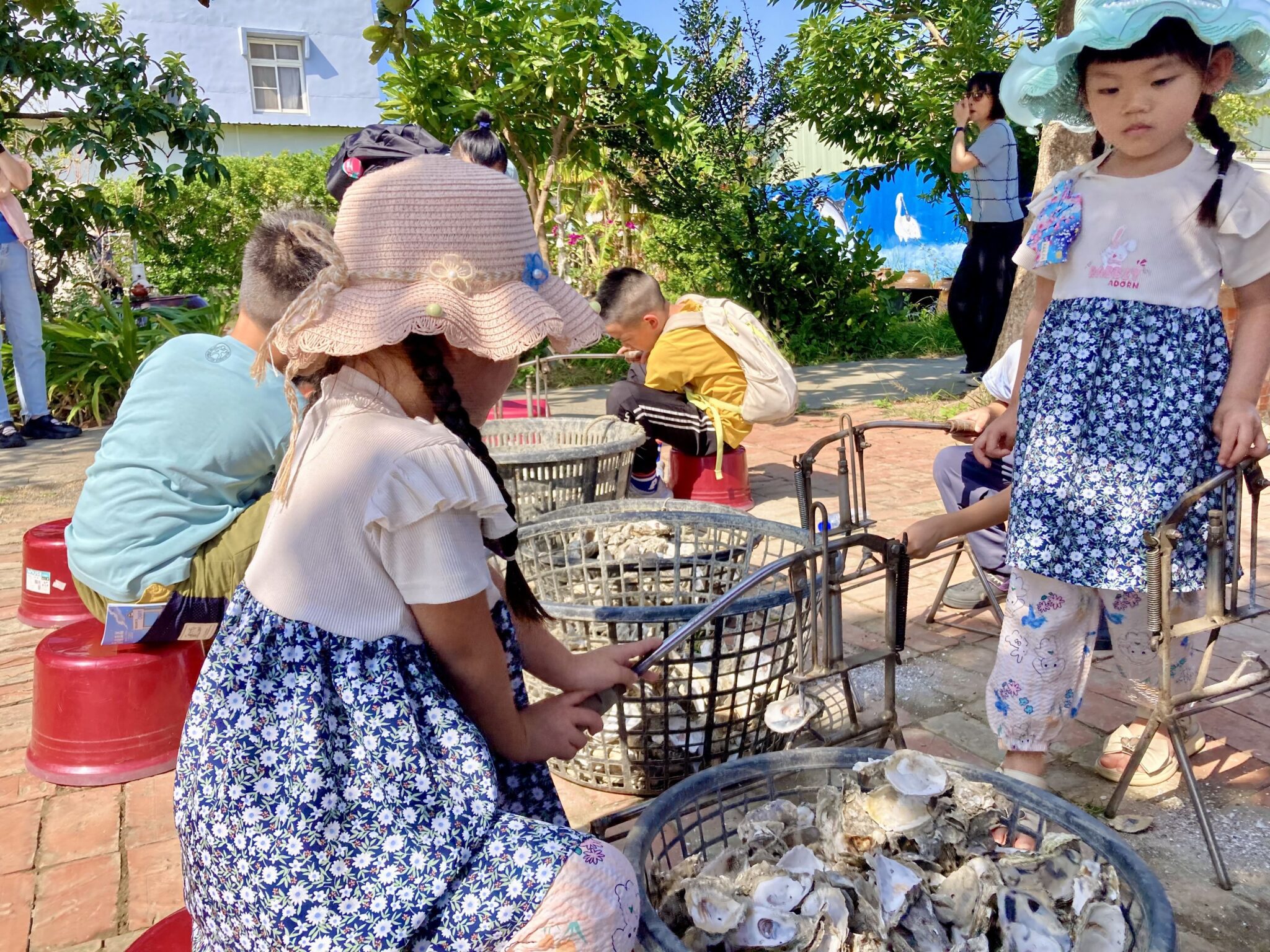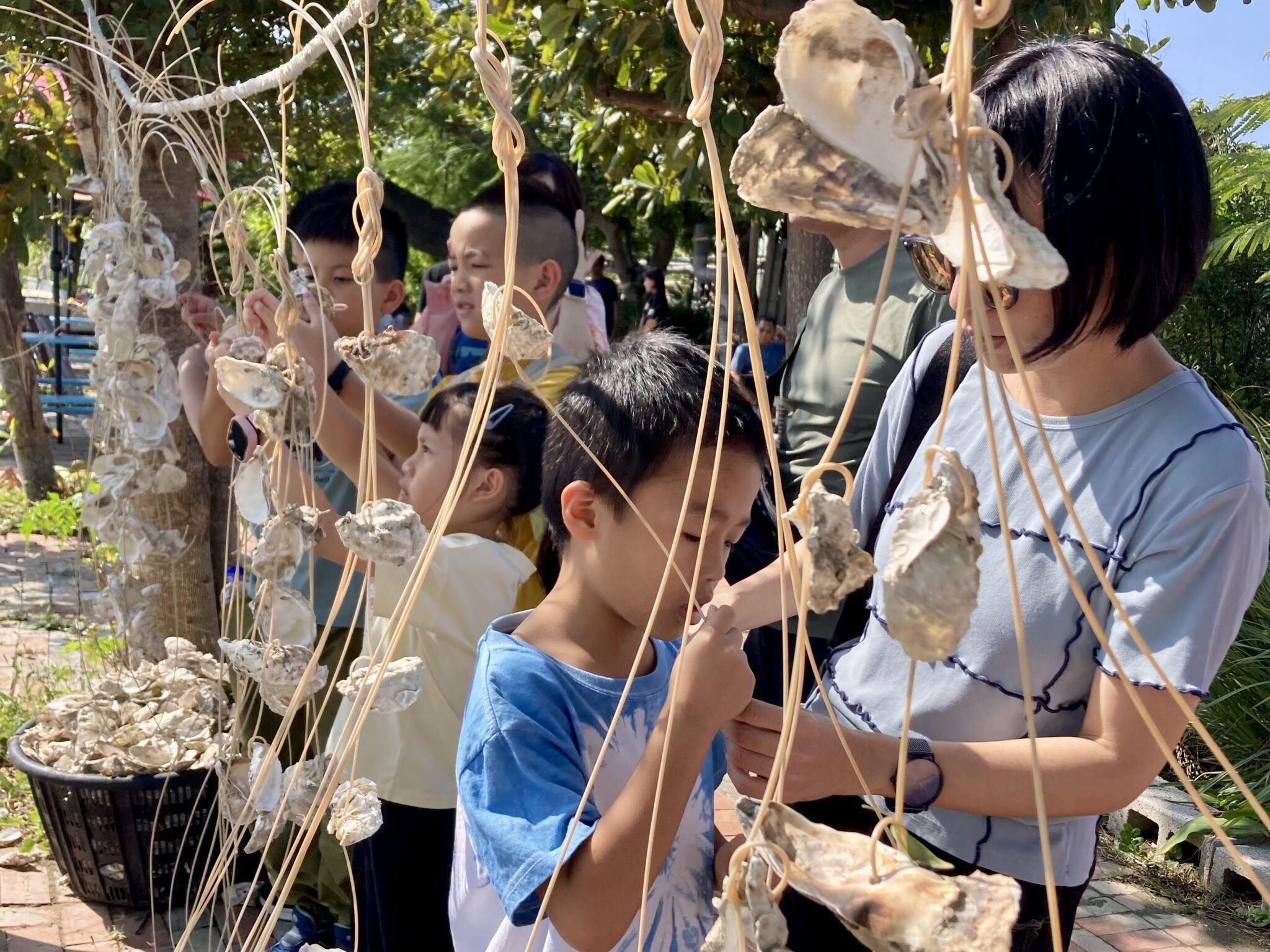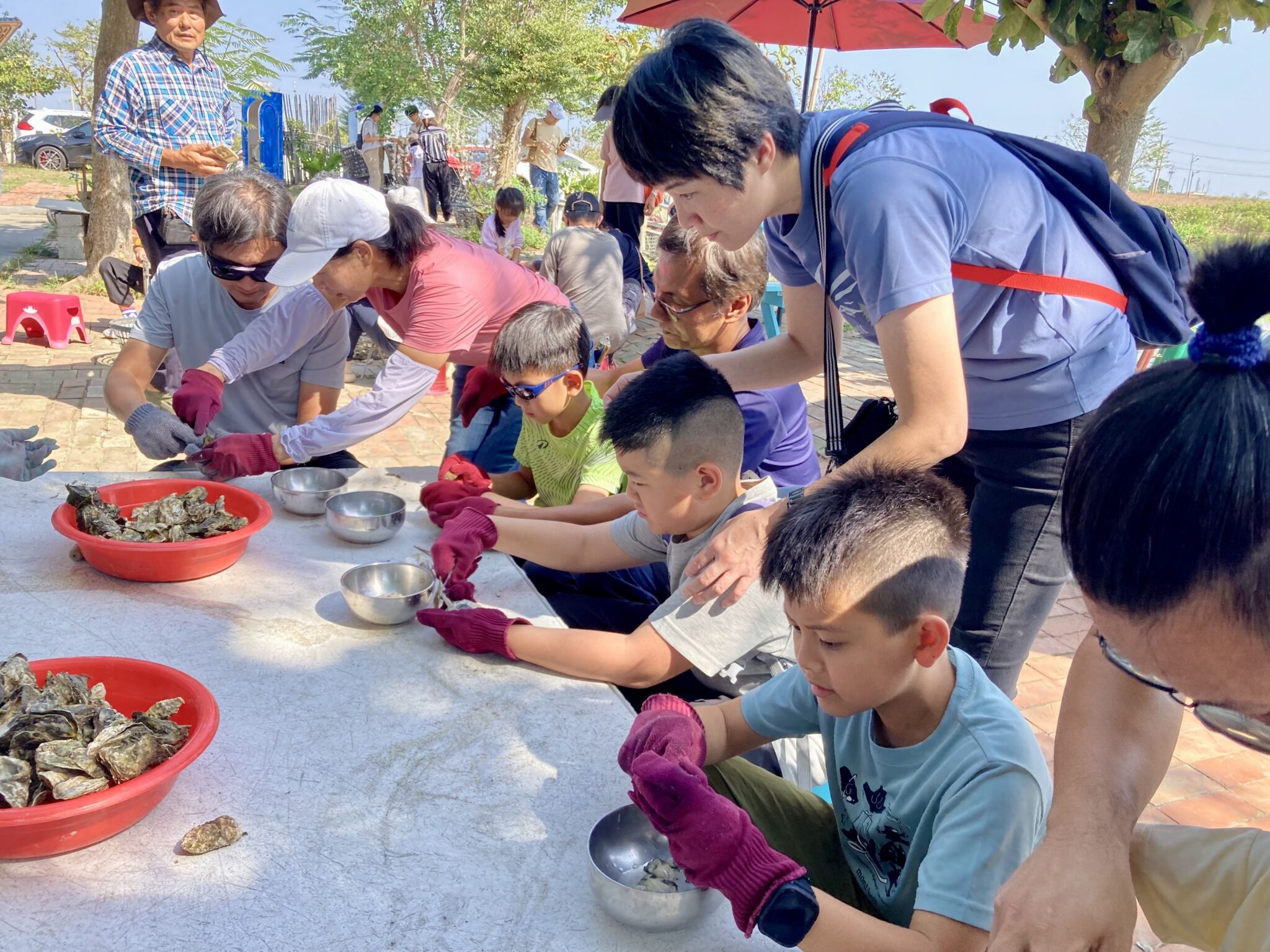 來自南投、台中、高雄及屏東等地的30組親子家庭親手體驗串蚵、剖蚵樂趣,還能大口品嚐現烤東石鮮蚵,在香氣四溢的海味中,認識嘉義蚵的美味與文化。