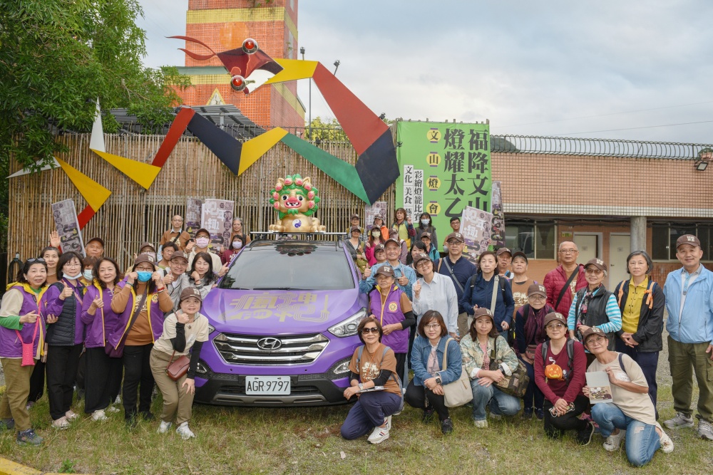 一台有九頭獅意象的前導車領航、搭配20人座中巴的小團走讀,「瘋神紀」系列活動之一「瘋神列車 走讀文山」以四個梯次(11/16、11/30、12/06、12/14)帶領民眾深入巡禮文山在地文化,共累計157位參與者上車同行。