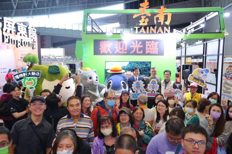 觀光旅遊局林國華局長表示,今年臺南館開幕特別推出「美食快閃」活動,現場限量發送姑姑茶葉蛋50份,以及聯盈發點心專門店加碼發送300顆脆皮流沙包,吸引民眾熱情排隊領取。旅展期間,臺南館亦推出多項互動好康,包括參加「FUN台南!讚」活動即可獲得臺南限量銅錢餅;參加「限時按讚」活動則可參加每日限量抽獎,獎項包含魚頭君U型記憶枕及椪餅,上述贈品數量有限,送完為止。旅展每日現場也安排精彩多元的舞台活動、特色推廣與趣味遊戲,邀請民眾參與。臺南館也特別邀請三大公協會,包含台南市府城文化觀光產業協會、台南市文化觀光伴手禮產業發展協會、台南市糕餅商業同業公會的業者們共同聯合推廣,歡迎民眾把握機會前來,活動詳情可至臺南館服務臺洽詢。來參加旅展的民眾,也可以順道逛逛114年臺南資訊月,臺南市政府觀光旅遊局的攤位推出三大抽贈獎活動,完成指定條件,就有機會獲得魚頭君的娃娃、U型頸枕、icash、書套、撲克牌、USB閱讀燈、魚頭君盒裝面紙等眾多精美好禮,不要錯過喔!