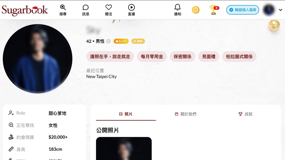 已通過驗證的用戶,在會員個人檔案將顯示「已驗證」徽章。圖/Sugarbook提供