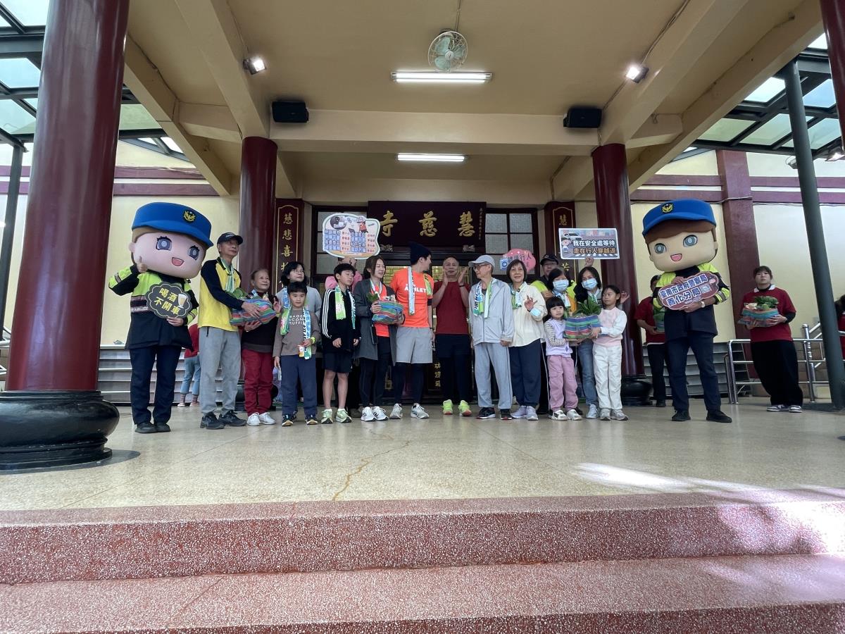 臺南市政府警察局善化分局今(28)日配合佛光山慧慈寺舉辦「2025佛光山慧慈寺 三代喜同堂 全民復蔬 超慢跑 非跑不可 Running棟起來」活動,現場吸引許多民眾扶老攜幼熱情參與,氣氛熱絡溫馨。善化分局出動「宣導團」採取走動式宣導方式,深入活動現場與民眾近距離互動,向參與民眾宣導交通安全與反詐騙觀念,並結合超人氣「警察大頭娃娃」與大小朋友互動拍照,在推廣健康運動與蔬食生活的同時,也提醒大家重視自身與家人的安全防護意識。