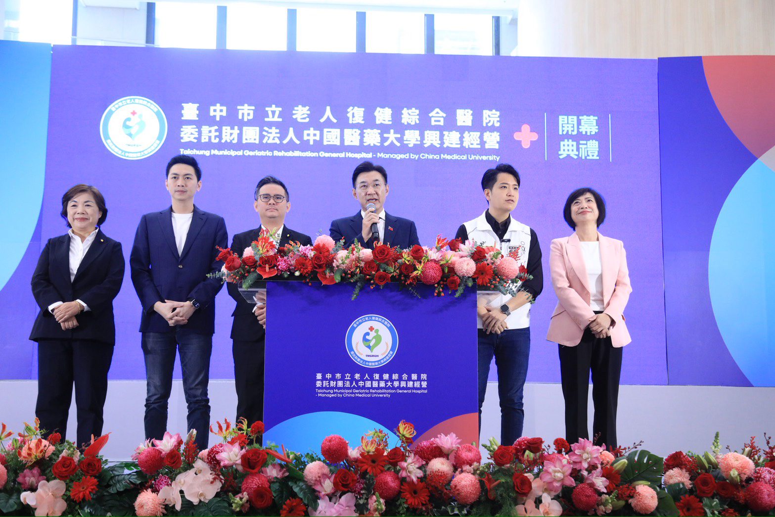 台中市立老人復健綜合醫院今(6)日正式開幕,市長盧秀燕、衛生福利部長石崇良及財團法人中國醫藥大學董事長蔡長海共同主持,一同見證台中市首座市立醫院啟用。「看見人民需求!」盧市長表示,台中過去沒有市立醫院,此座醫院正式開幕代表台中新的里程碑,感謝各界促成,與市府共同實踐對市民健康的承諾,讓台中更宜居。
