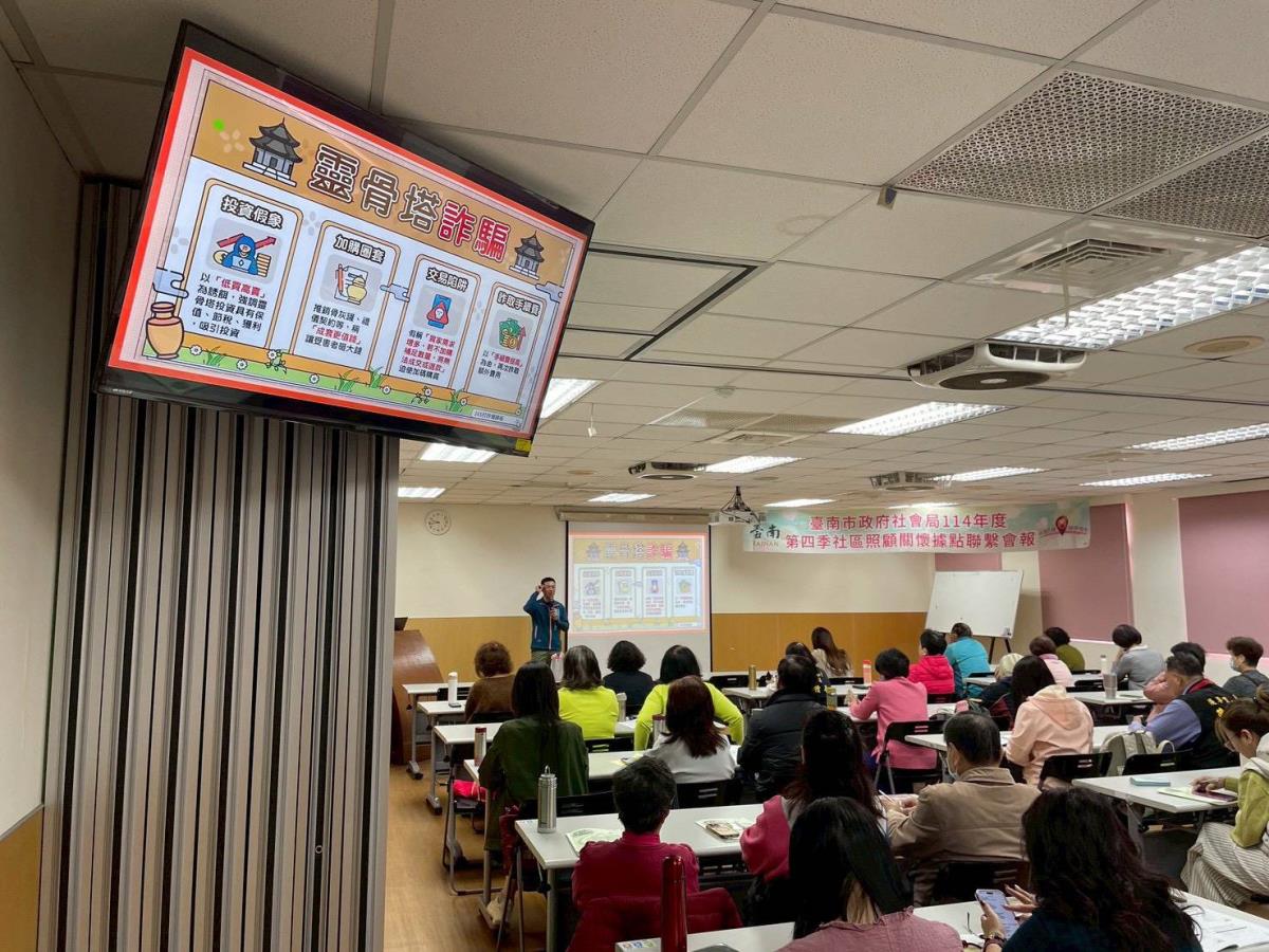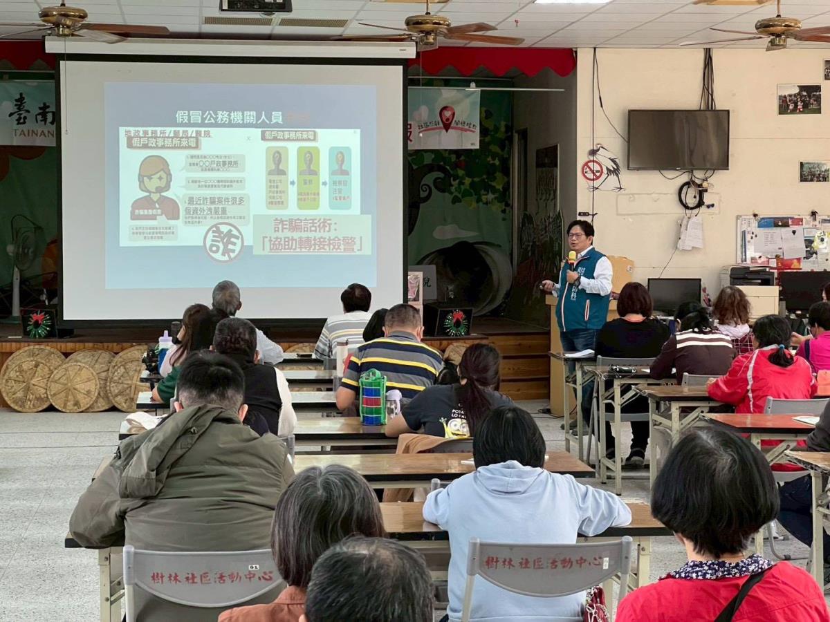 記者黃冠源/台南報導 為將最新防詐資訊傳遞予民眾及打造社區防詐防護網,臺南市政府警察局結合市府社會局於114年12月4日至11日舉辦114年度第四季社區照顧關懷據點聯繫會報場合,前進歸仁區歸仁社區、山上區明和社區、玉井區沙田社區等10個關懷據點,由南市警局講師針對各區據點、區公所業務承辦人及里幹事等人員進行防詐騙宣導,希望透過據點會報之場合傳遞有效之防詐資訊,不僅能提升第一線人員對新興詐騙手法的警覺性,也能讓防詐觀念深入偏鄉及社區,讓防詐訊息更加普及。
