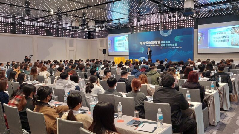 唯賀餐飲高峰會中參與者專注的聆聽主講者分享,台上為NU PASTA義大利麵總經理吳家德做壓軸總結實景。圖/記者游穎達攝