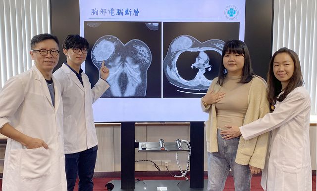 【台灣電報記者 玉女/ 台中報導】 台中25歲陳小姐去年初摸到右側乳房有硬塊,以為是生理週期的正常腫脹,未料2週內腫塊快速成長至胸部大了近一個罩杯。臺中榮總乳房外科洪志強主任安排切片檢查確診為乳房葉狀瘤,因腫瘤已約9公分大且考量腫瘤周邊安全距離,右乳房須全切除。陳小姐說,當下腦筋空白,引以為傲的乳房須切除,切除後又意外發現懷孕,一想到孩子可能問「媽媽你的胸部為什麼跟別人不一樣!」讓她更確定重建決心。在整形外科呂俊德主任、婦女醫學部林俐伶醫師合作下,於懷孕8週時接受8小時的自體腹部皮瓣重建乳房手術,並順利於去年11月迎接兒子出生,開心投入育兒生活。 陳小姐說,由於目前健保未給付乳房重建,她很幸運獲外公、媽媽和丈夫支持進行手術,術後家人稱讚她的胸部與之前一樣,若不是有疤痕幾乎看不出來,讓她保有完整的身體意象(Body image),不留遺憾。她也提醒女性民眾每月自我檢查乳房的重要性,發現異狀即時就醫。 整形外科呂俊德主任指出,由於乳房篩檢及自我乳房檢查觀念普及,近年乳癌發生年齡有年輕化趨勢,加上女性自我意識抬頭,對於因病切除乳房後的重建需求增加。國際文獻研究顯示,重建乳房有助於病人提高自信心、降低焦慮的心理治療效果。臺中榮總整形外科統計,因病切除再重建乳房的病人從未滿24歲到71歲都有,2024年乳房重建手術達90例,比2020年成長近3倍,2025年可望達百例。 呂俊德解釋,傳統重建只有植入物義乳,近年來由於醫療技術進步,發展出利用自體組織移植來進行乳房重建,即利用自己的身體組織重建一個觸感較柔軟、外型較自然且可終身使用的乳房,但手術困難度較植入物重建來得複雜。兩者各有優缺點,如原本身材偏瘦者不適用自體脂肪重建;身材豐腴者則不建議以植入物重建義乳。不論採哪一種方式都需要醫師與病人充分溝通,根據個人病況和期望,決定重建的方式。 臺中榮總乳房外科洪志強主任表示,乳房葉狀瘤由乳房間質組織增生形成,與一般乳房惡性腫瘤是由乳腺管增生不同。發生原因不明確,但醫學普遍認為可能和荷爾蒙及基因突變有關,其生長速度快、少有疼痛感,因此病人大多經自我觸診發現,也可能因腫瘤牽扯表皮致外觀變形而發現。乳房葉狀瘤發生率低,西方統計數據顯示,約占女性乳房腫瘤0.3-1%,好發於40-50歲女性,然任何年齡的女性都可能罹患葉狀瘤。葉狀瘤經切片組織型態病理分類為良性(占所有葉狀瘤50%以上)、邊緣性(borderline)及惡性。標準治療方法是手術切除,不需要像一般乳癌般接受淋巴結切除、化學治療或放射線治療。陳小姐診斷為邊緣性葉狀瘤,因腫瘤大且為確保周邊組織安全距離,降低復發及轉移機率,故建議切除整個右乳房。 呂俊德醫師補充,陳小姐切除腫瘤後、在重建手術前意外發現懷孕,決定在初期孕期即進行重建手術,整形外科會診婦女醫學部協助評估,並密切追蹤病人和胎兒的狀況。婦女醫學部林俐伶醫師表示,陳小姐於孕中期發現子宮頸閉鎖不全情形,排除感染及其他早產症狀後,進行了緊急子宮頸環紮手術,也做足早產準備,隨後於34週早產,母胎平安。林俐伶醫師補充,目前文獻上僅有少數個案報告,皆無出現早產的情形,早產本身可能與陳小姐患有糖尿病等其他因素相關,也提醒了跨團隊的專業諮詢及共同照護的重要性。 陳小姐指出,原以為單純的乳房腫瘤治療,在寶寶意外報到下,變成治療、重建、生產等複雜狀況,還好臺中榮總團隊有乳房外科、整形外科、婦產科和新生兒醫療團隊全力照顧,讓自己無後顧之憂,不會顧此失彼,能治療乳房腫瘤、重建乳房,以完整的狀態生產迎接兒子,感謝醫療團隊。 臺中榮總整形外科、乳房外科、婦女醫學部團隊共同照護陳小姐(右2),在孕期切除右乳房葉狀瘤、重建並順利生子。 臺中榮總醫療團隊共同照護陳小姐於孕期切除乳房葉狀瘤、重建並順利產子,12月11日提前為她慶生。