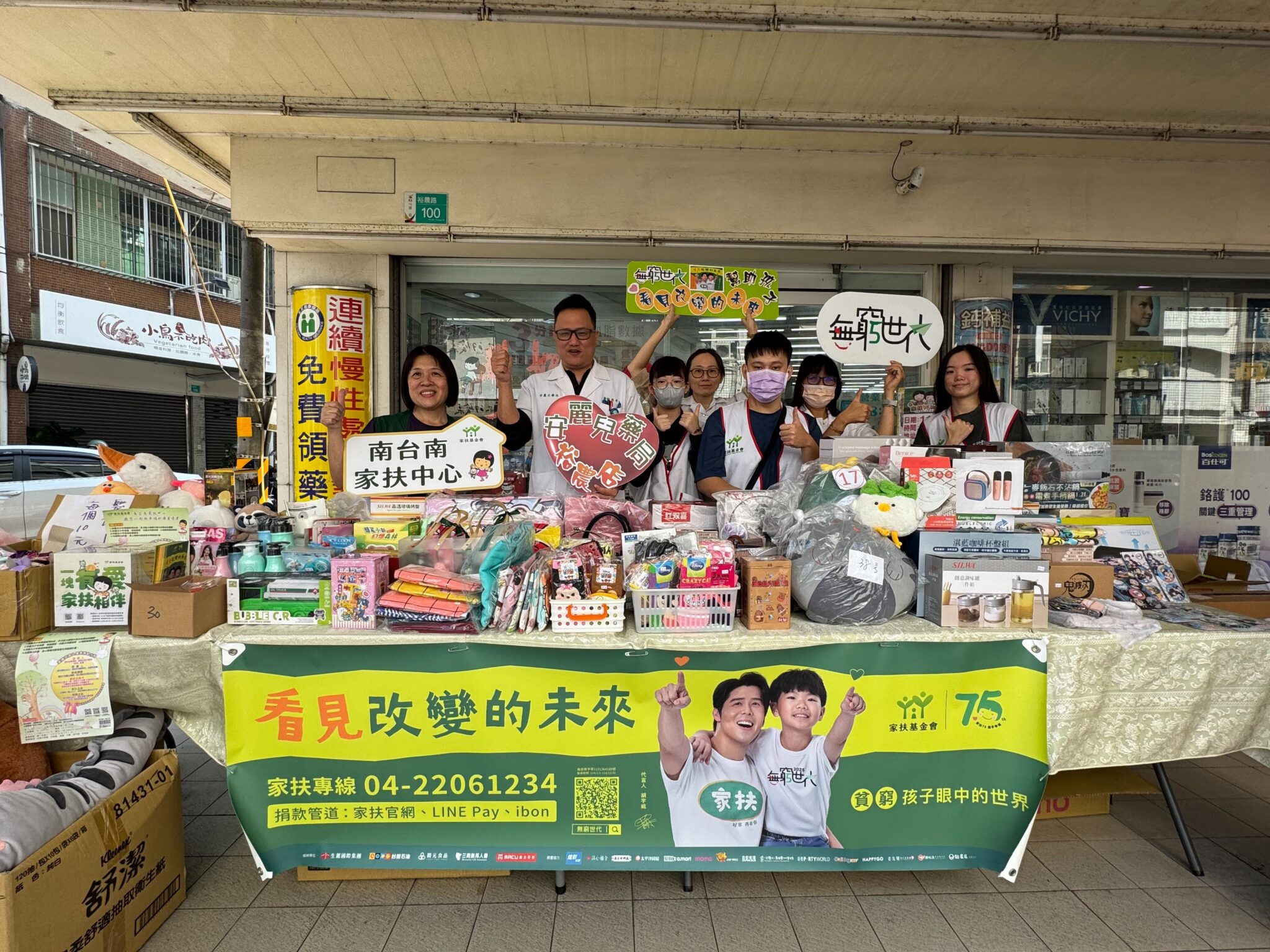位於台南市東區裕農路的安麗兒藥局,每年12月週年慶之前,皆以公益活動來慶祝生日,不僅舉辦弱勢關懷的公益活動,也藉此善盡社會責任,並為弱勢族群盡一份心力。近日於藥局騎樓與南台南家扶共同舉辦「無窮世代」公益愛心義賣,結合分店及社區民眾捐出的琳琅滿目愛心商品,讓來來往往的民眾駐足,不僅用行動義買,更以捐款相挺助貧工作。