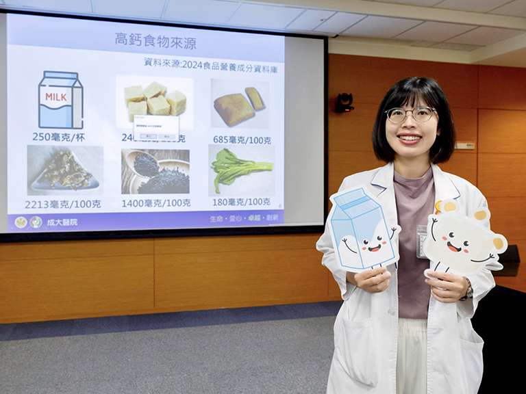成大醫院營養部黃薇營養師說明,鈣是人體內含量最多的巨量礦物質營養素,99%存在骨骼及牙齒中,幫助維持骨骼強健;剩餘1%分布於軟體組織與體液中,控制肌肉收縮、神經訊息傳導、細胞內訊息傳遞與荷爾蒙分泌等重要功能。