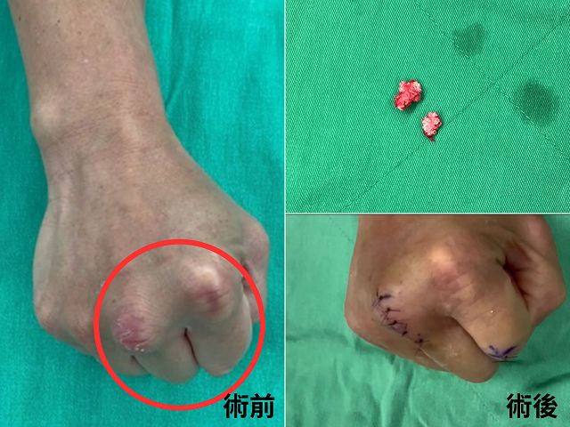 56歲李先生是竹科工程師,患有痛風病史,兩年多前,他發現右手食指和中指逐漸出現痛風腫塊,不僅外觀明顯,敲鍵盤時也常感不適、抓握動作也有緊繃感,讓工作與心情大受影響。經網路搜尋後前往長安醫院就診,骨科陳冠儒醫師診斷為痛風石後,接受「微創超音波刀痛風石切除手術」,術後恢復良好,不僅擺脫礙眼硬塊,握拳、打字也輕鬆許多,讓他直呼:「早點開刀就好了!」
