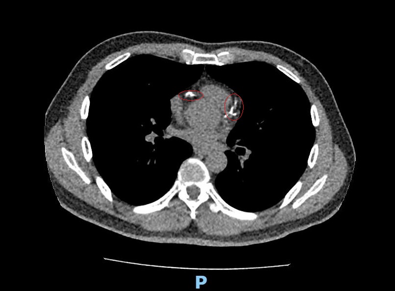 部彰李學林醫師表示,林先生日前接受肺癌篩檢時意外發現心血管鈣化,但無法確認是血管內或血管外鈣化。因患者平時已出現胸悶症狀,進一步做心臟冠狀動脈電腦斷層,確認為3條主要冠狀動脈血管內鈣化狹窄達85%以上,若未及時處理,隨時可能引發急性心肌梗塞。