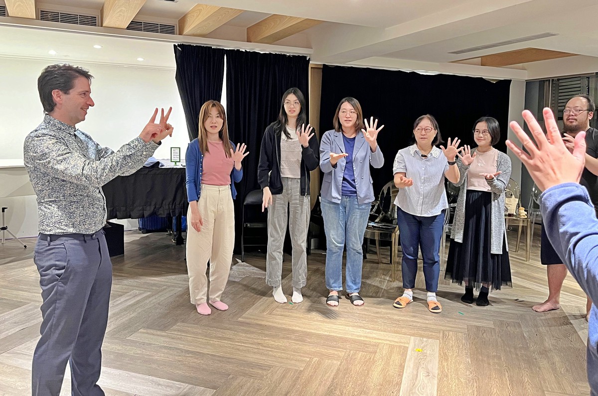 本次課程聚焦三大主題:學生引導策略、肢體語言與排練技巧,以及 學生互動的心理學。Paul 與 Daniela 採雙人協同教學模式,交替示範、引導討論與現場實作,融合即興、反思與人本關懷,打造出專業且具啟發性的教學現場,讓參與教師重新思考「教音樂」的本質與影響。此外,大師班也首度向台灣教育界介紹 VOCES8 倫敦音樂大師課程,邀請有志於音樂專業的台灣學生赴英參與,親訪 VOCES8 總部 及 英國皇家音樂學院,與聲樂與管弦樂領域的一線大師面對面學習,實現跨文化、跨領域的國際教育升級。
